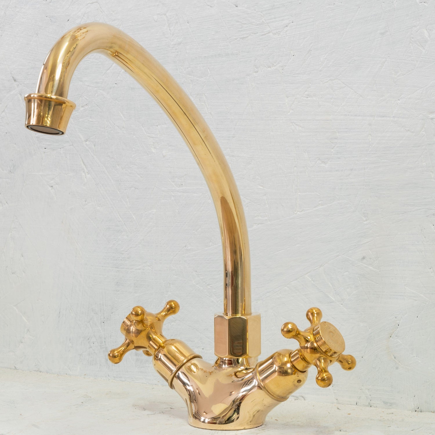 A solid brass deck-mounted swivel tap.