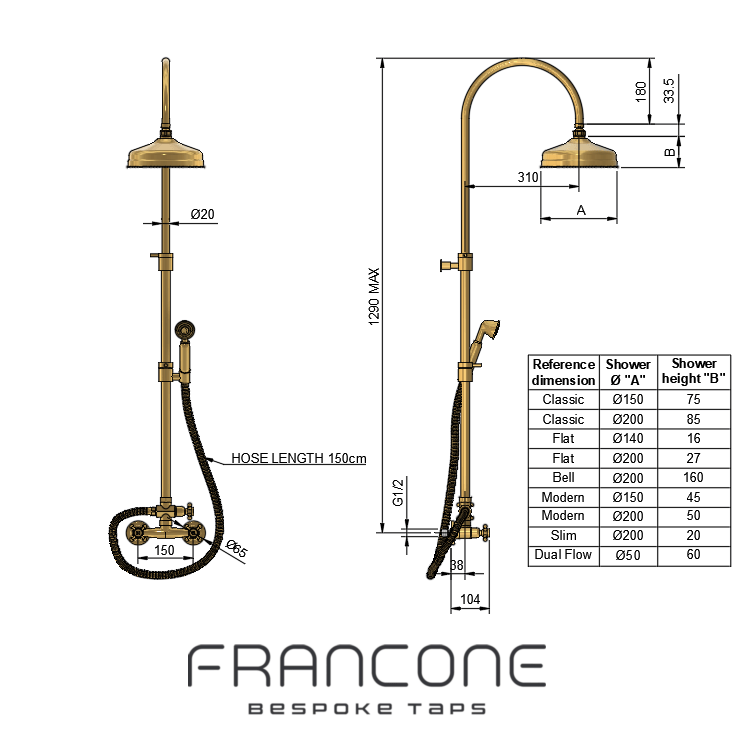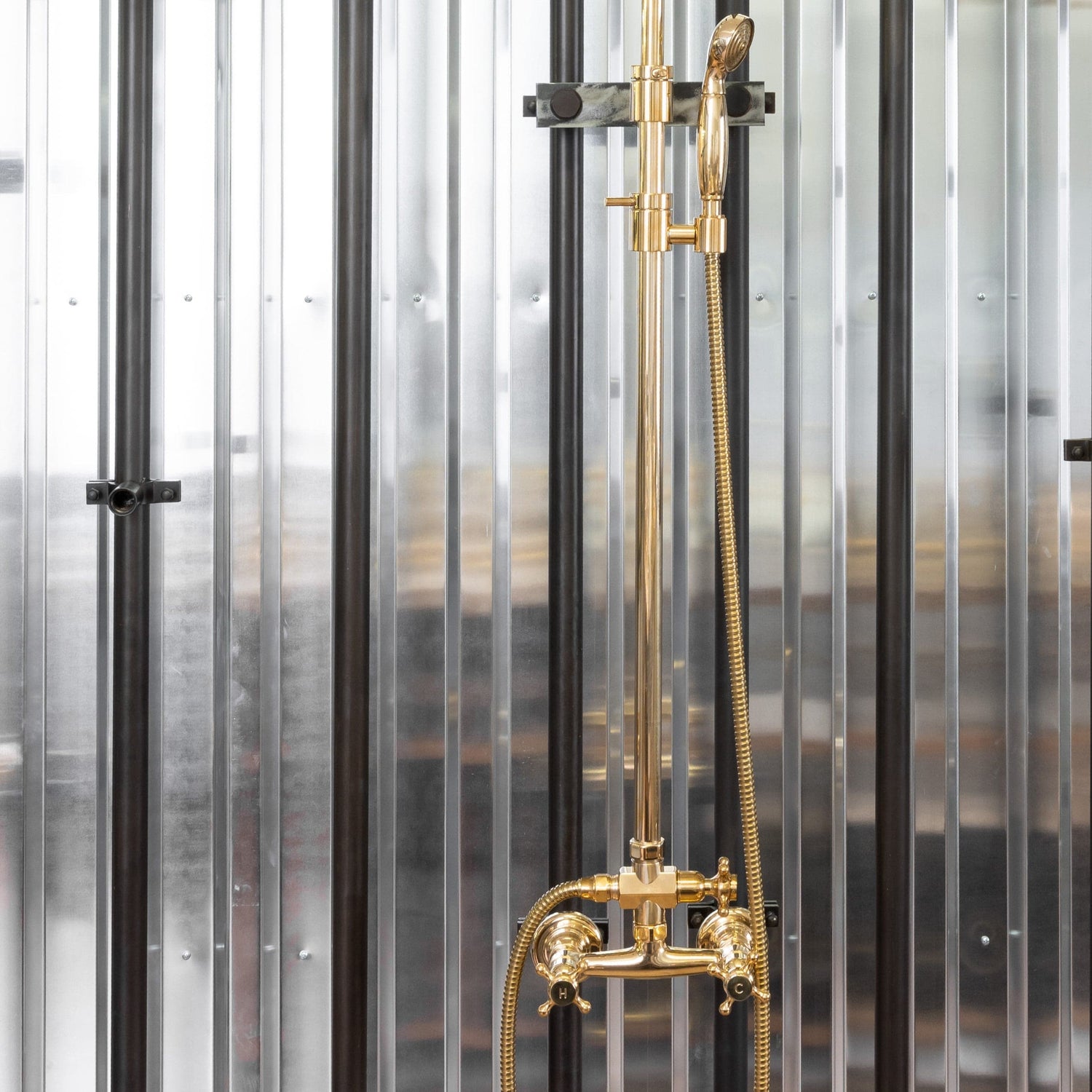 The BTS4 is much like our classic column shower but also features an adjustable hand shower. With this design, you get the best of both worlds. The exposed column reaches up and curves to reach a 200mm angle-adjustable shower head. The hand shower is cradled onto the side of the column but is also moveable in a vertical direction. We can switch the main shower head for an 18mm flat version which saves 70mm from the total ceiling height when specified.