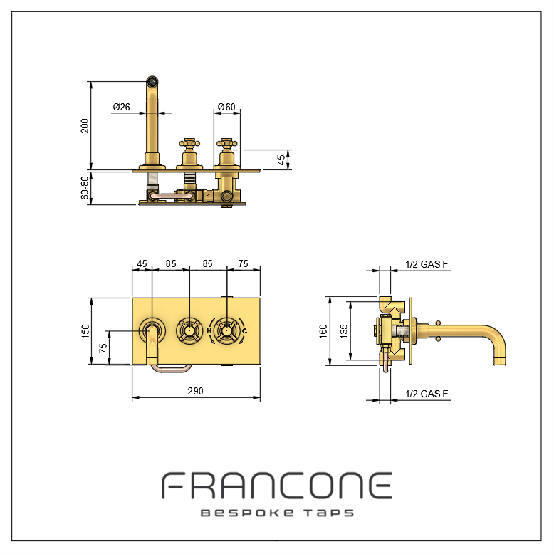 Customise BT33T to suit your decor, taste, and aesthetic. The spout design can be customised to any length, making it highly versatile for use with almost any different basin or bath (specify your length in the purchase notes). Choose from 9 different handle designs, with the standard option giving the feel of heritage inspiration and amazing usability, adapting to any traditional bathroom.