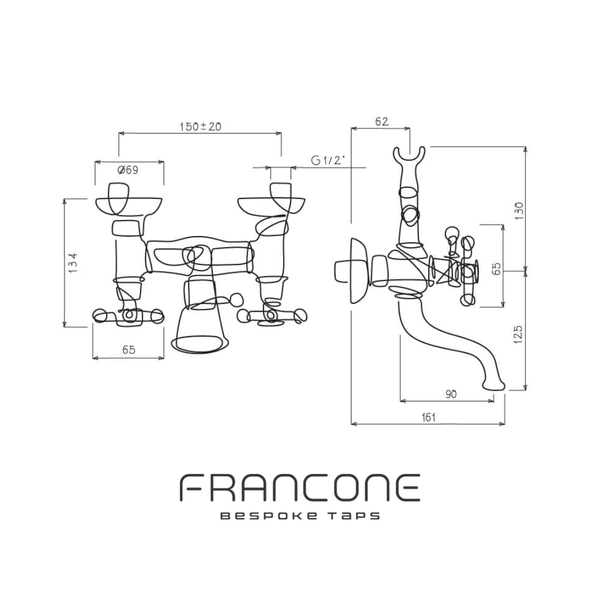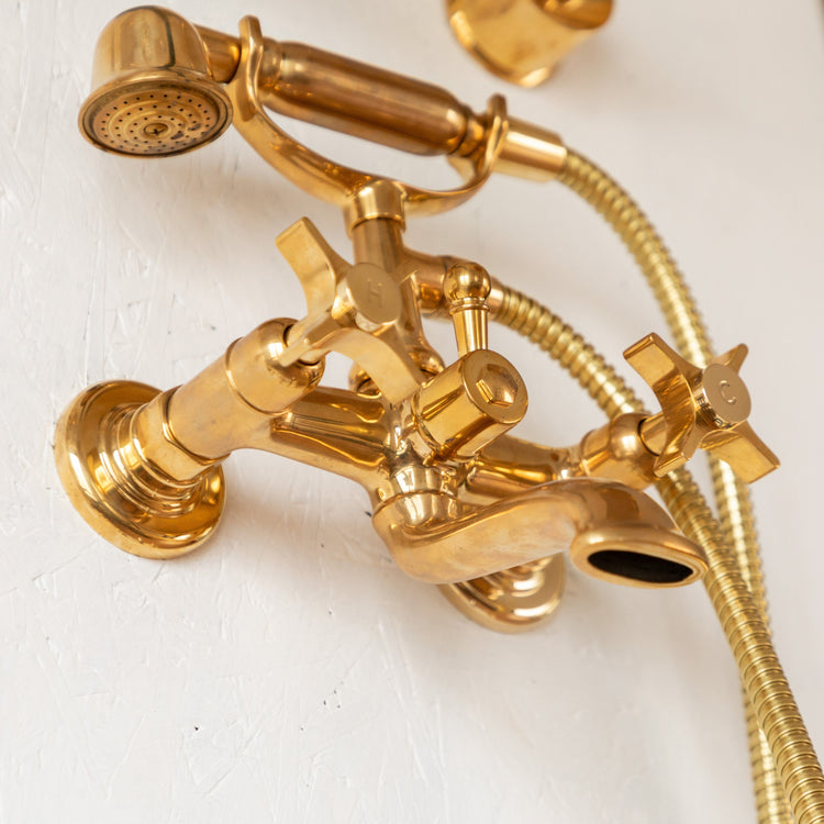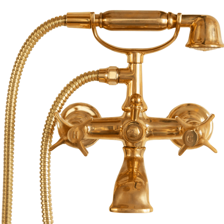 As your classic wall-mounted bath tap, the BT26 exemplifies the effortless style. The lengthy hand shower sits cradled at the top of the design and makes for advanced practicality. The hot and cold taps on either side of the traditional spout can be switched for any of the six Bespoke Taps signature designs or choose a different finish to make the design your own.