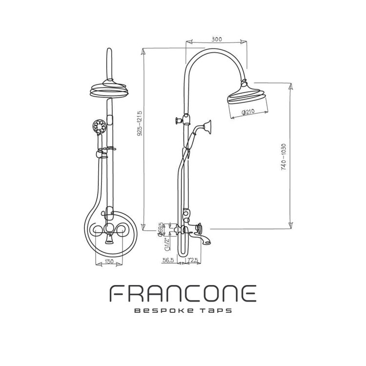 This model is available without a hand shower for a £50 deduction. The total height can be changed on top of the standard 30cm extension. We can change the hand shower to your design with a reference image.