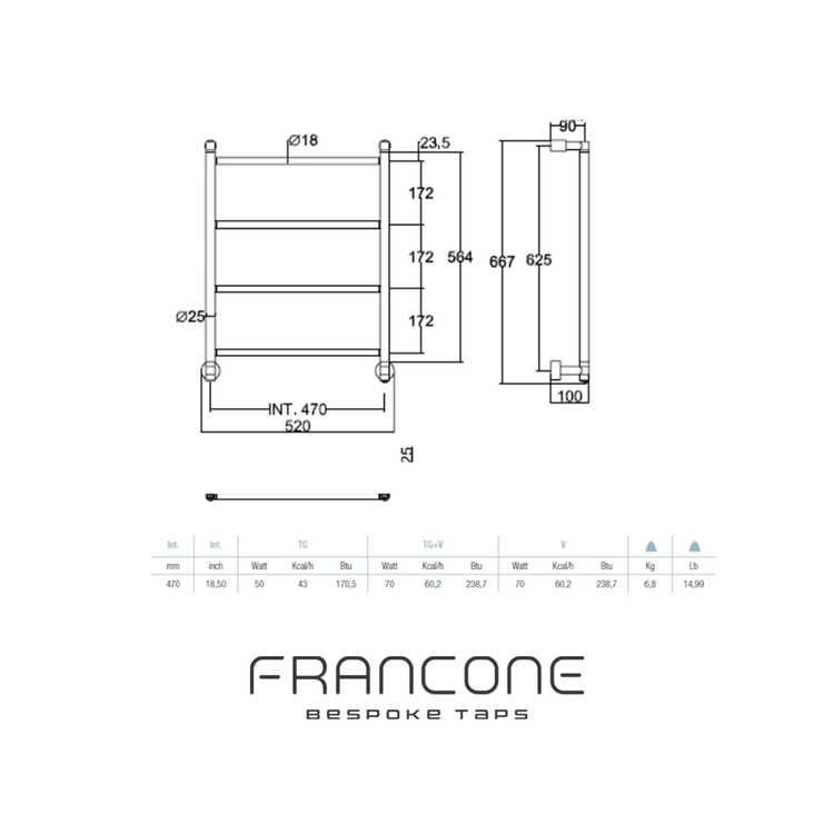The BTR13 is one of the more contemporary designs in our range of heated towel rails. The four modern angular bars are electric-powered in this model and can be made in any finish. This design also features a neat on/off button for added style. Class 1, 220V max 500watt. The on/off switch is NOT included. The switch will need to be wired remotely by the electrician.