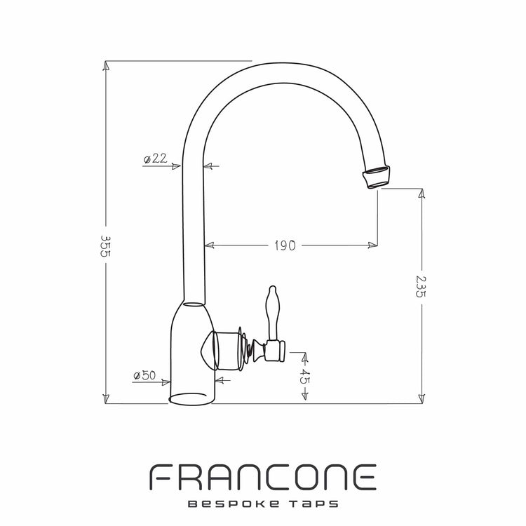 Deck-mounted solid brass kitchen mixer taps with swivel spout.