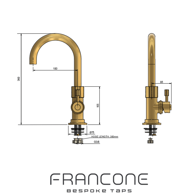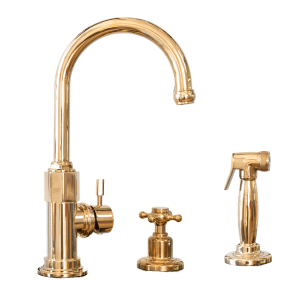 Introducing the BT7CY, a deck-mounted solid brass swivel tap featuring a mixer handle and new hexagonal brass detailing. The curved spout can be customised in height as detailed below and swivels from the base for enhanced usability and basin coverage. This model comes with a cold water spray rinse, operated by a separate tap and reaching a length of 1.2m. The spray is activated by pressing and holding the lever on the spray head. The additional feature makes the overall model amazingly versatile and great for maintenance. This design with spray lends itself nicely to any kitchen.