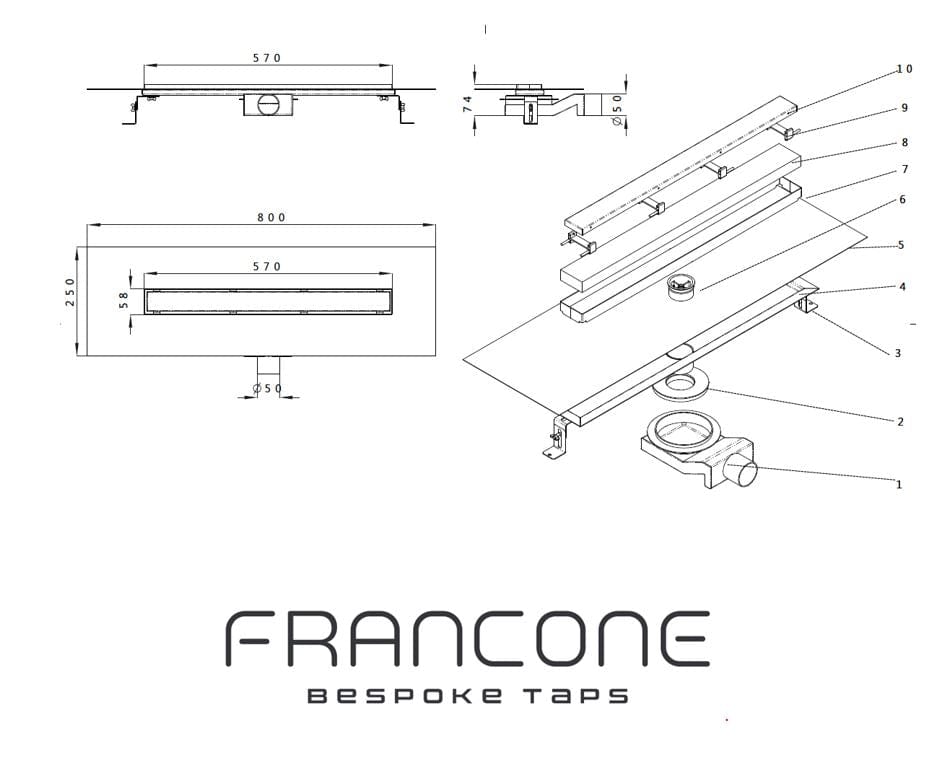 The BTA17 is made from solid brass and it's available in different finishes and is perfect for walk-in showers or wet rooms given the added drainage capability. It measures 570mm x 58mm.