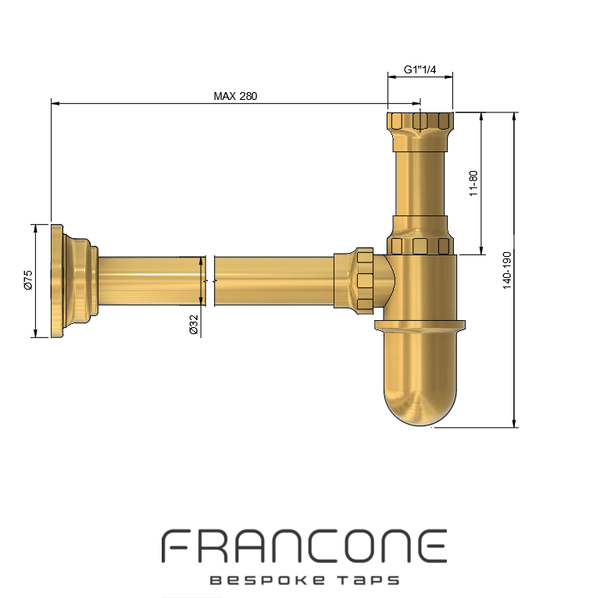 The BTA1 is traditional in measures 1 1/4" for a standard fitting. This bottle trap is ideal for small and large basins alike and comes in your choice of finish.