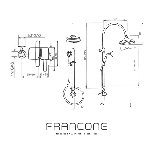 The total height can be changed on top of the standard 30cm extension. We can change the hand shower to your design with a reference image.