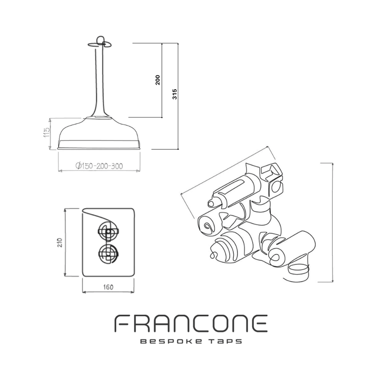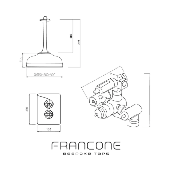 The BTS15 is similar in layout to our other ceiling-mounted shower models but features a classic thermostatic valve. The handles can be mixed in design to suit your decor and the showerhead measures 15-20cm in diameter with an angled head.