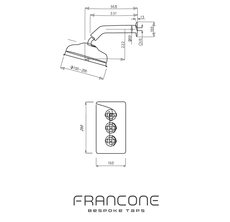 A solid brass wall-mounted thermostatic shower with extra large arm.