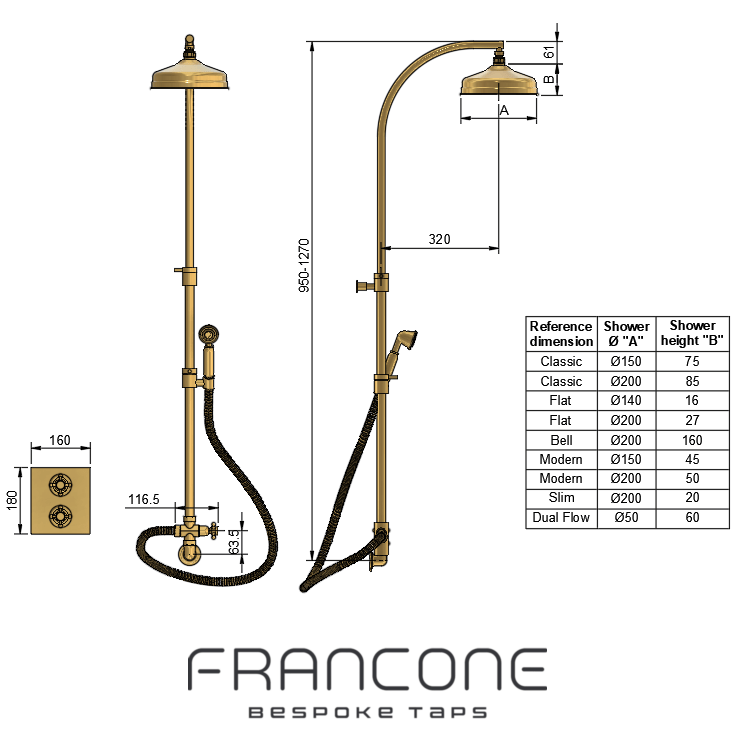 This model is available without a hand shower for a £50 deduction. The total height can be changed with the standard 30cm extension. We can change the hand shower with your reference image. The back plate can be changed to an industrial-style design and a combination of handles can be chosen. You have the option to select one of the two handles in a ceramic lever style.