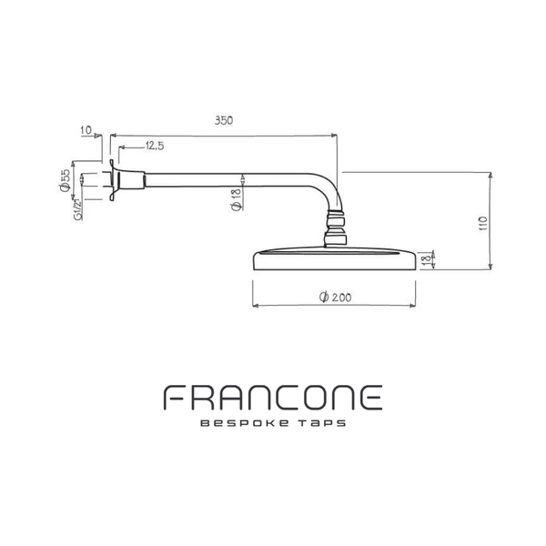 One of the more simple in our wall-mounted shower range, the BTS35 is no-fuss and comprises our sleek flat shower head and two separate hot and cold handles in a design of your choice. The shower head measures 15 cm in diameter and adjusts in angle. Like all other showers, you can specify your desired finish. Please note, that the flat shower head is 140mm.