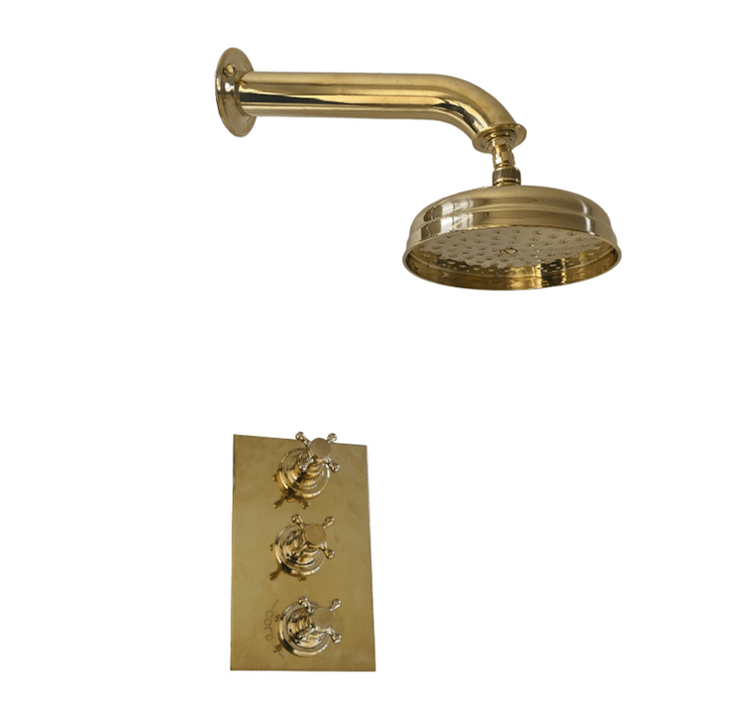 A solid brass wall-mounted thermostatic shower with extra large arm.