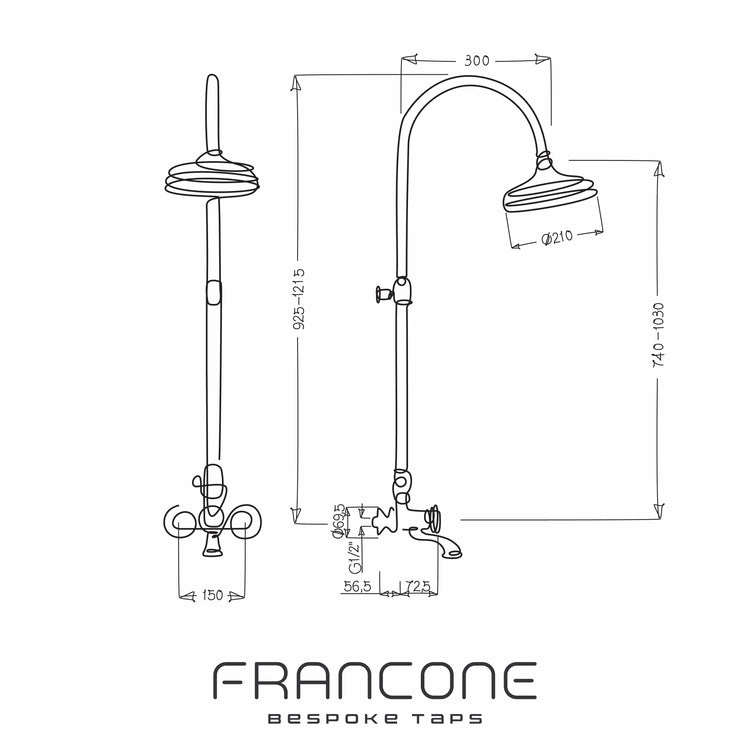 Designed with showers over freestanding or fitted baths in mind, the BTS44 does it all. A column extension of 30cm is included in the order and the shower head measures 20cm as standard and can be adjusted in angle. This can also be swapped with a 1.8cm flat shower head to save 7cm in height from the ceiling when specified during ordering. The spout projects 16.5cm from the wall.