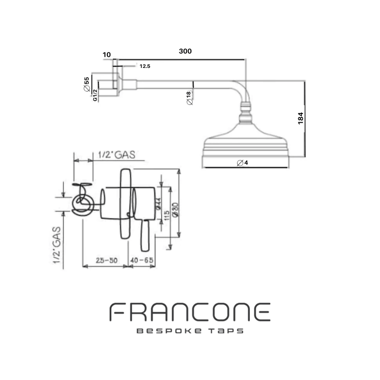 Simple in layout and easy to use, the BTS6 is made up of a classic mixer handle which dictates both the flow and temperature of the water as well as our classic 15-20cm shower head which can be angled. The shower head sits on a wall-mounted arm with interior piping remaining concealed.