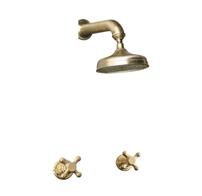 A simple and effective design, the BTS9 is made of our classic 15-20cm angleable shower head on a thicker arm of 5cm diameter which is wall-mounted. In this model, the hot and cold water is operated by separate taps in a design of your choice.