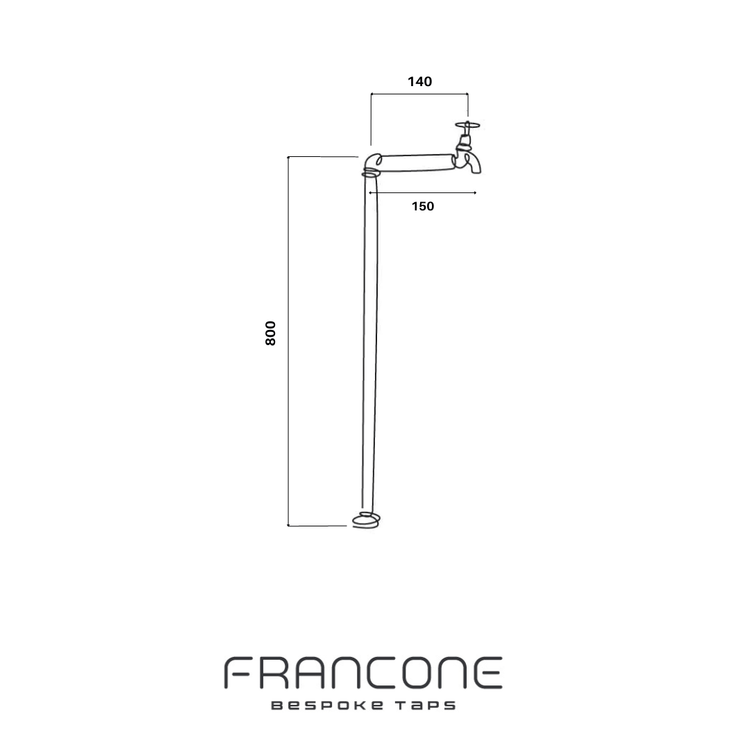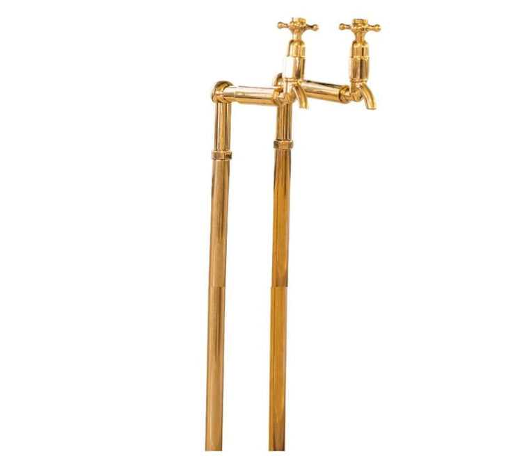 The BT62 model features two separate floor-mounted bases to reach up and over a freestanding bath. Each piece can be customised in height and the spout reaches 15cm as standard. This design features smaller water outlets so may be better suited to a smaller bath or for less pressure.