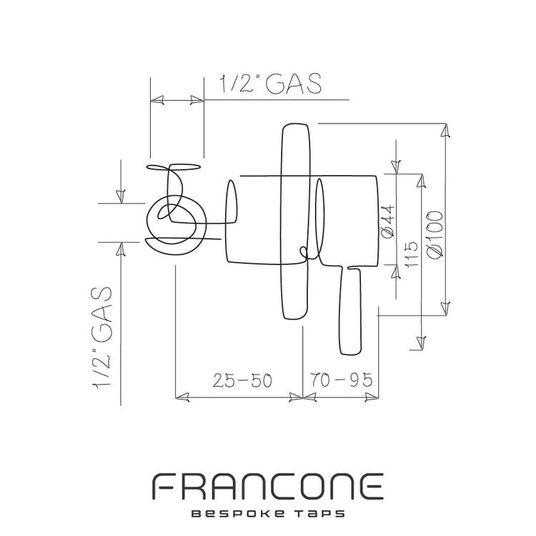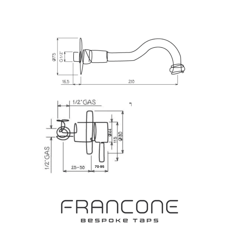 For those who favor simplicity in functionality, the BT56 is for you. The two-piece design combines a smooth, traditional wall-mounted spout with a separate handle. The single progressive mixer tap dictates both hot and cold water flow for precise temperature control. The spout can be customised as below.