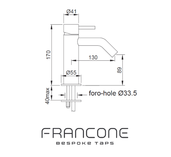 This model is your classic mixer tap, but made from stainless steel. There is an option to create the tap with a brass handle, which any of our unlacquered finishes can be applied to. Thanks to the compact design, the SS64 model is ideally suited to small basins as everything is combined in one main part.