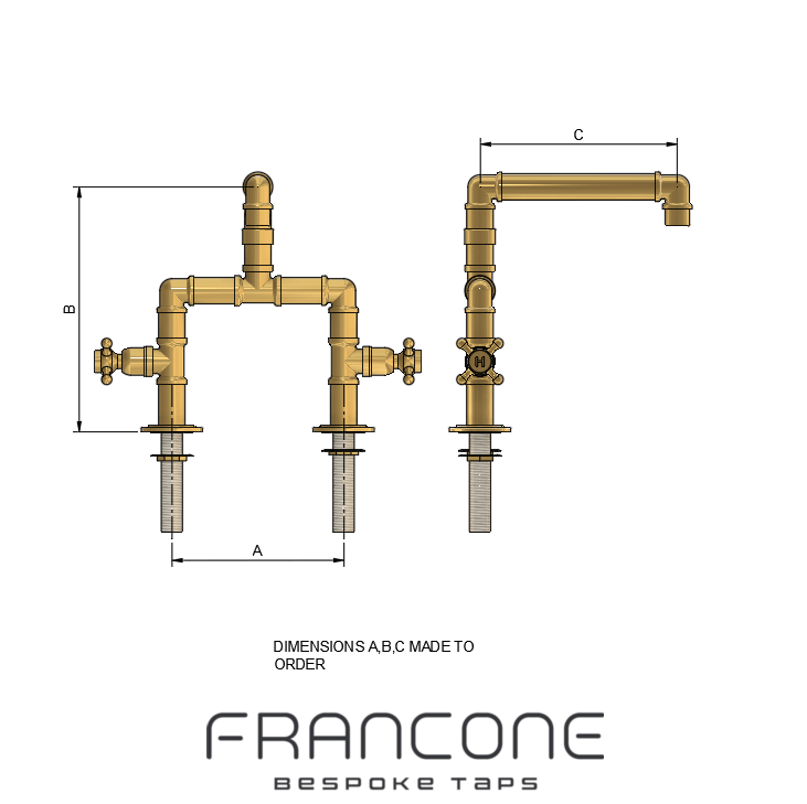 If you are opting for an industrial look, BT13 combines sleek contemporary lines with exposed joints typical of the trend. This design requires 230mm under the handles as standard but can be lengthened to suit any kitchen or bathroom basin height or even a freestanding bath. The BT13 is entirely made to order.