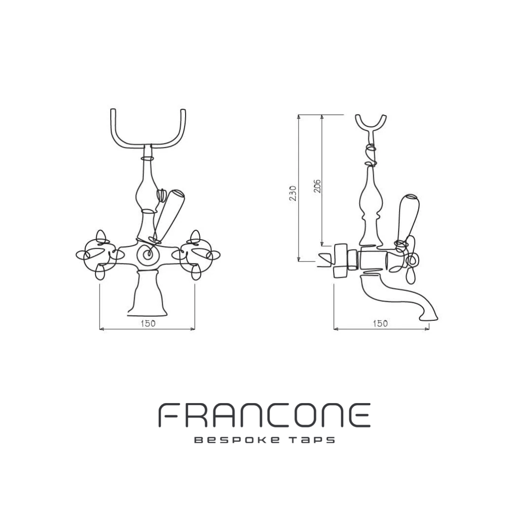 Your classic bath tap design, BT23 is as timeless as it gets. Inspired by the kind of traditional bath tap you'd find in a grand old English home, this model features the hand shower cradle on top of the simple hot and cold tap layout with a spout that delivers the perfect flow. Take your pick of handles or customise the shower diverter as below. For Ceramic handles B&W, kindly specify your preference by indicating either Black or White in the order notes.
