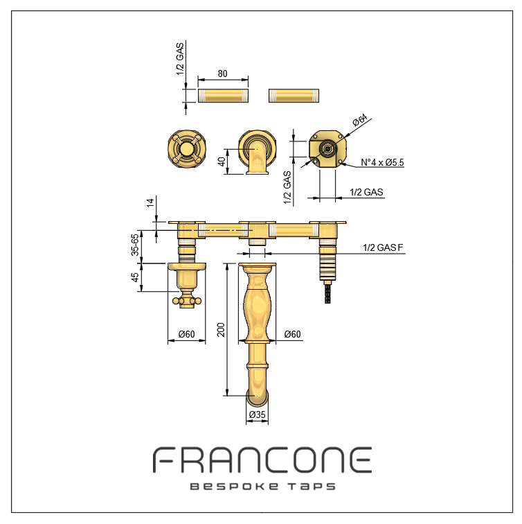 This design takes inspiration from heritage wall-mounted designs but utilises a new shape to bring something different to your bathroom. Depending on your choice of hot and cold handles, you customise to make a truly unique tap product or something quirky and contemporary. For Ceramic handles B&W, kindly specify your preference by indicating either Black or White in the order notes. The spout measures 20cm but can be customised as below.