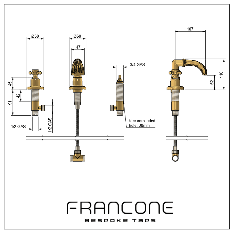 BT50 is an artisanal made deck mounted bath filler created to complement traditional bathtubs thanks to the waterfall spout. This exquisite piece is a testament to the fusion of timeless design and meticulous artistry, bringing a sense of elegance and serenity to your bathing sanctuary. The choice of finish, length of spout, and handle design are customisable as below.