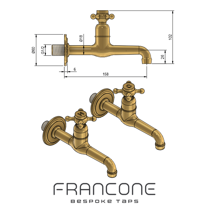Designed with a traditional bathroom basin in mind, the BT72 compromises of a pair of neat hot and cold taps with handles situated on the top of the layout. The spout of the design has a nice reach of 15cm as standard for optimal flow and a better hand washing experience but can be changed to suit your basin as below. For Ceramic handles B&W, kindly specify your preference by indicating either Black or White in the order notes.