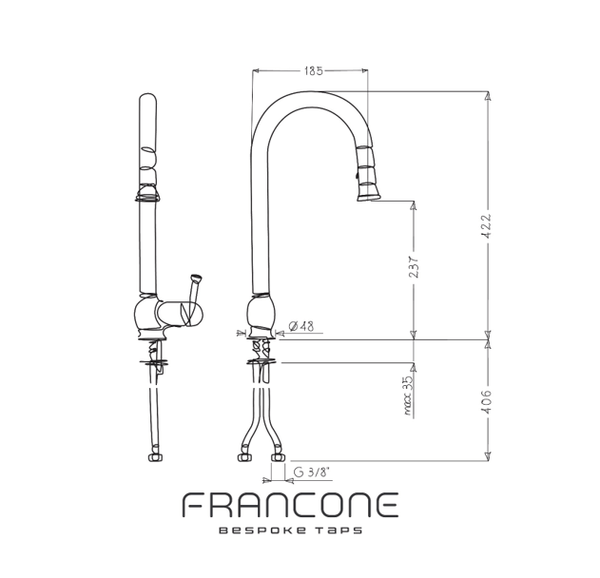 This solid brass classic kitchen mixer tap with a 150cm pull-out feature is both elegant and functional, allowing for easy washing and rinsing of dishes and produce. The traditional design lends itself best to more timeless and classic kitchens.
