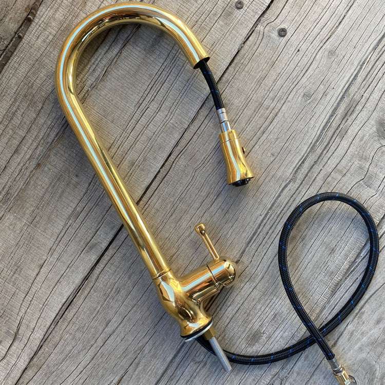 A solid brass classic kitchen mixer tap with pull out.