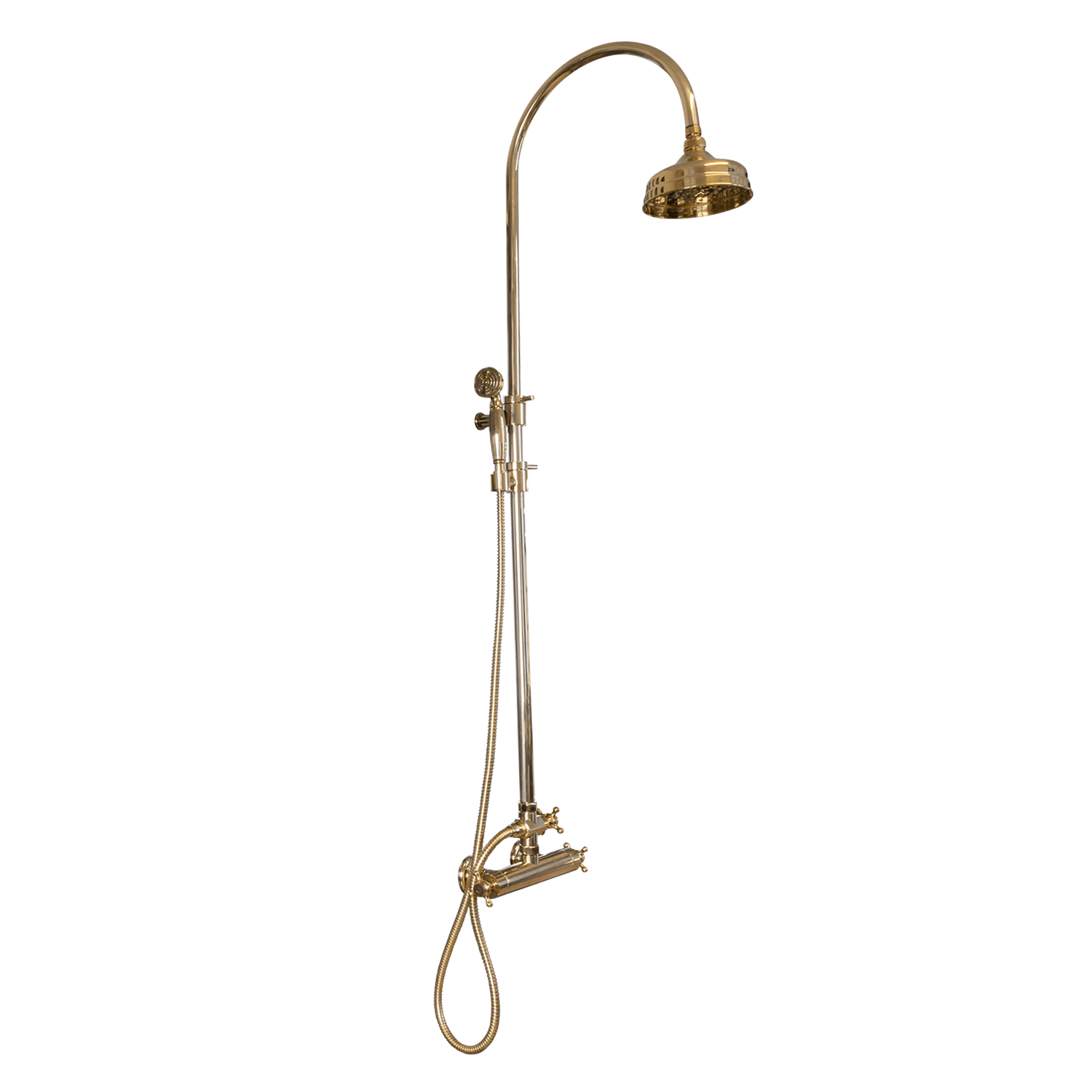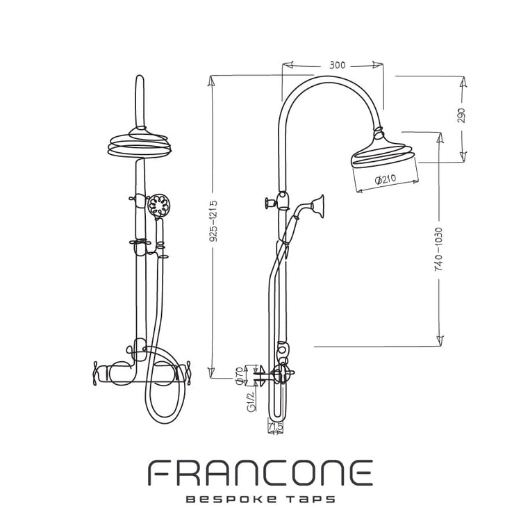 The BTS30 column shower model is similar to our traditional design but features a bar to which the handles are attached, creating something unique and distinctive. With a 150mm centre to centre measurement. The shower head measures 200mm and the hand shower attaches to the column, changing by a diverter. We can also switch the main shower head to an 18mm flat version which saves 70mm from the ceiling height when specified. Please note, that the flat shower head is 140mm.