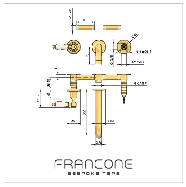 Customise BT34 to suit your decor, taste, and aesthetic. The spout design sits 20cm from the wall as standard but can be customised to any length, making it highly versatile for use with almost any different basin or bath (specify your length in the purchase notes).