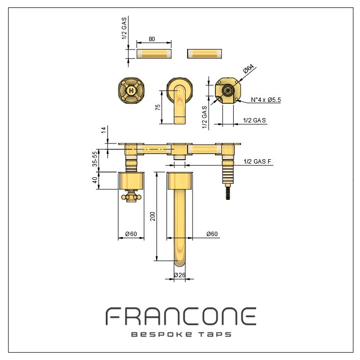 The spout design sits 20cm from the wall as standard but can be customised to any length, making it highly versatile for use with almost any different basin or bath (specify your length in the purchase notes). Choose from six different handle designs, with the standard option giving the feel of heritage inspiration and amazing usability, adapting to any traditional bathroom. .