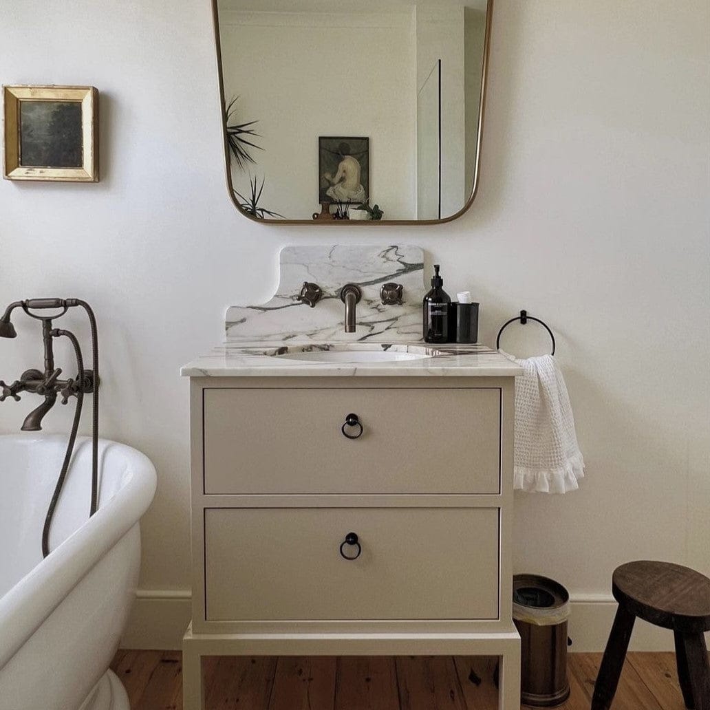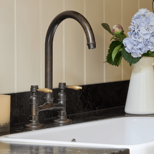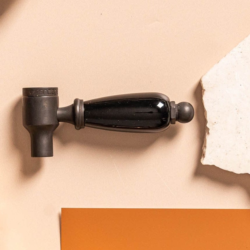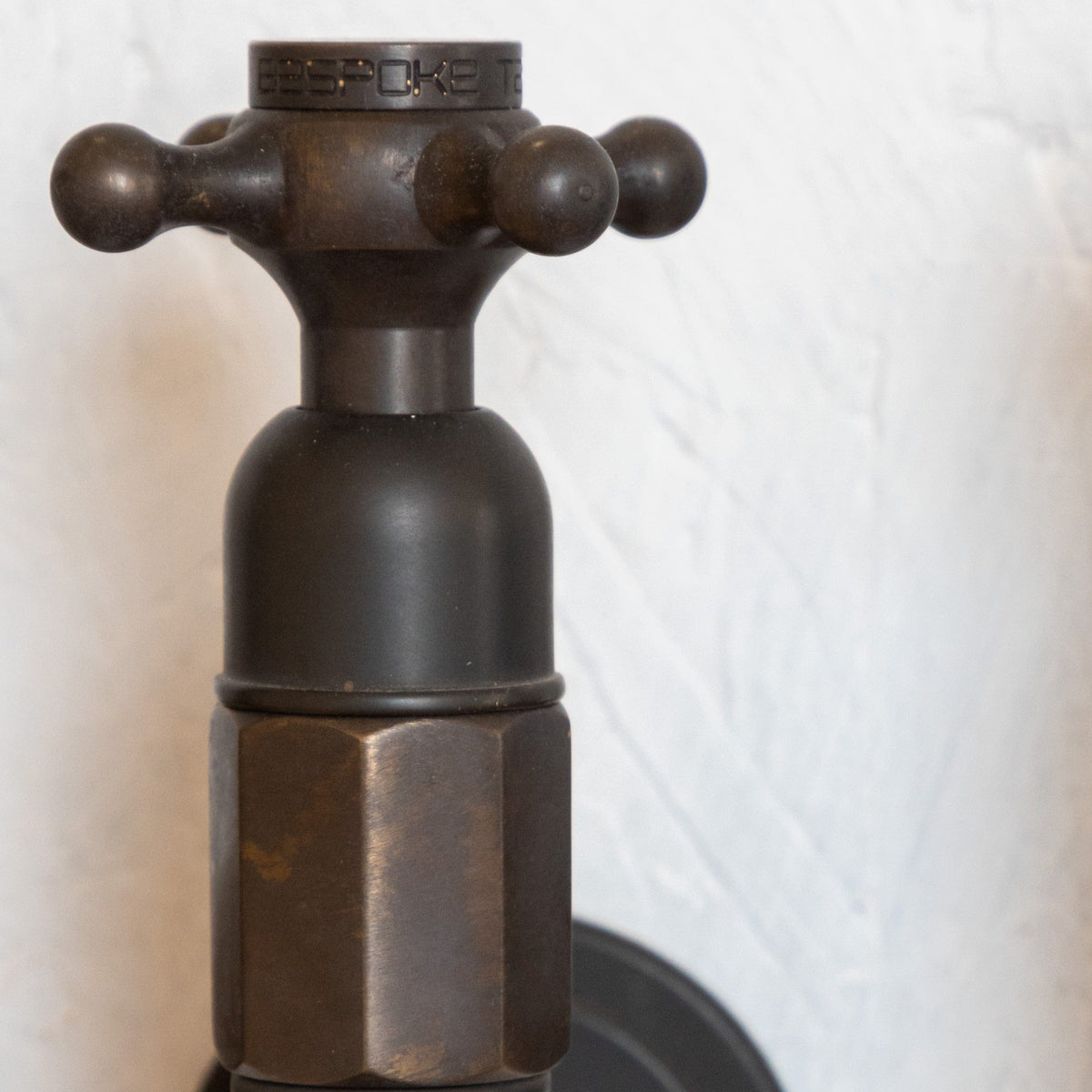 Gunmetal is a dark bronze finish, slightly brushed and left unlacquered only protected with beeswax. This implies that it naturally develops signs of wear and patina over time. As a result, some imperfections like glimpses of brass underneath or bright water residual marks are typical and expected in this type of finish. These variations can be influenced by environmental factors, including heat, moisture, and the presence of limescale.