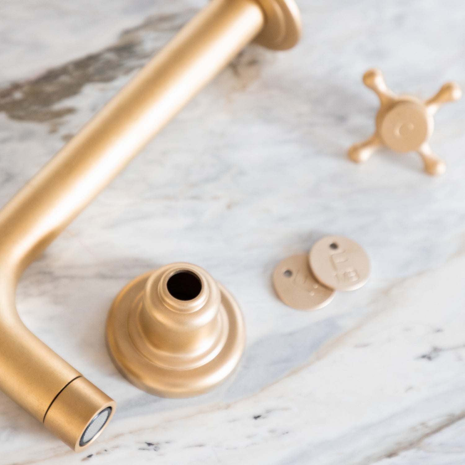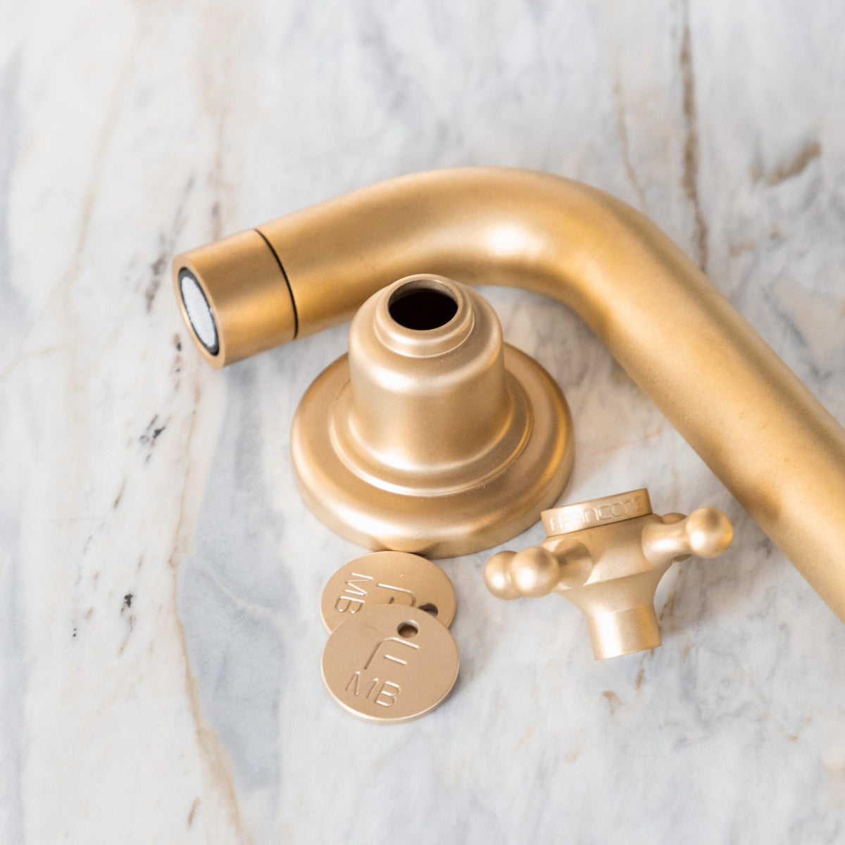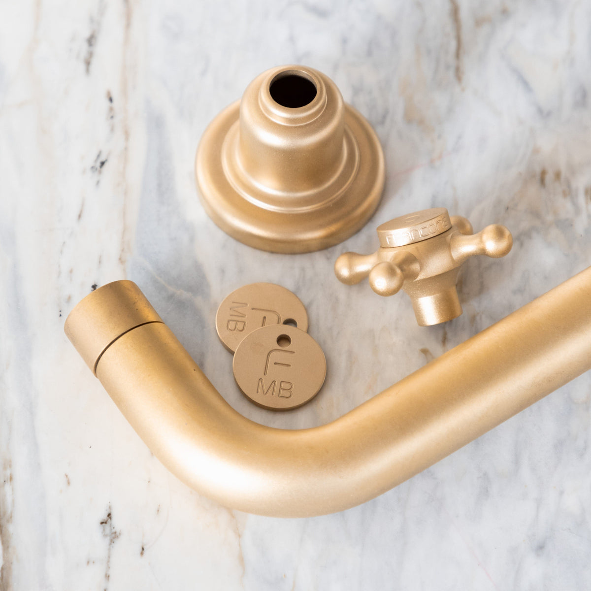 Our matt brass finish, unlacquered, has a soft, muted surface with a warm, golden tone that exudes understated elegance. Its unlacquered nature allows it to develop a natural patina over time, adding depth and rich, antique character.