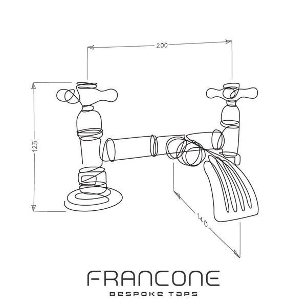 The spout is interchangeable with designs from other models and is also available without stripes. Centre-to-centre measures 20cm and can be made custom.