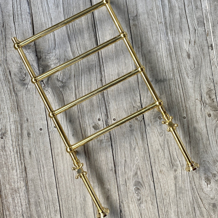 A floor-mounted heated towel rail with a four-bar plumbing system. The BTR20 is a floor-mounted variation of our BTR15 heated towel rail. This design draws inspiration from more traditional aesthetics and allows for your choice of handles positioned at the base of the unit.