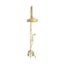 A solid brass adjustable deck mounted column shower with hand shower and bath filler.